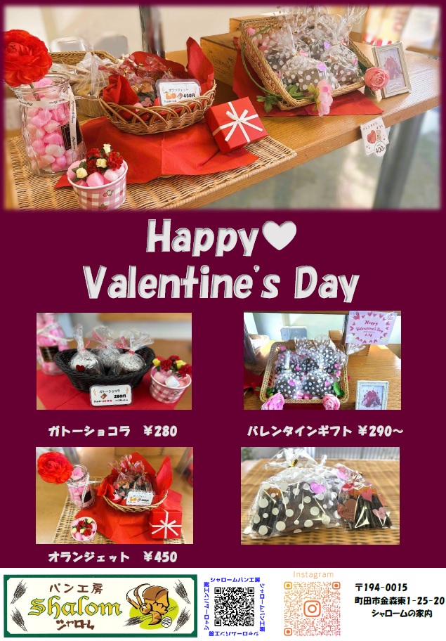 令和8年2月10日(火)10:00~14:30まで町田市役所「ハッピーかわせみ」でパン工房シャロームの商品を販売致します。惣菜パンや、焼き菓子、今回はバレンタインギフトも販売しておりますので是非みなさんお立ち寄り下さい。
